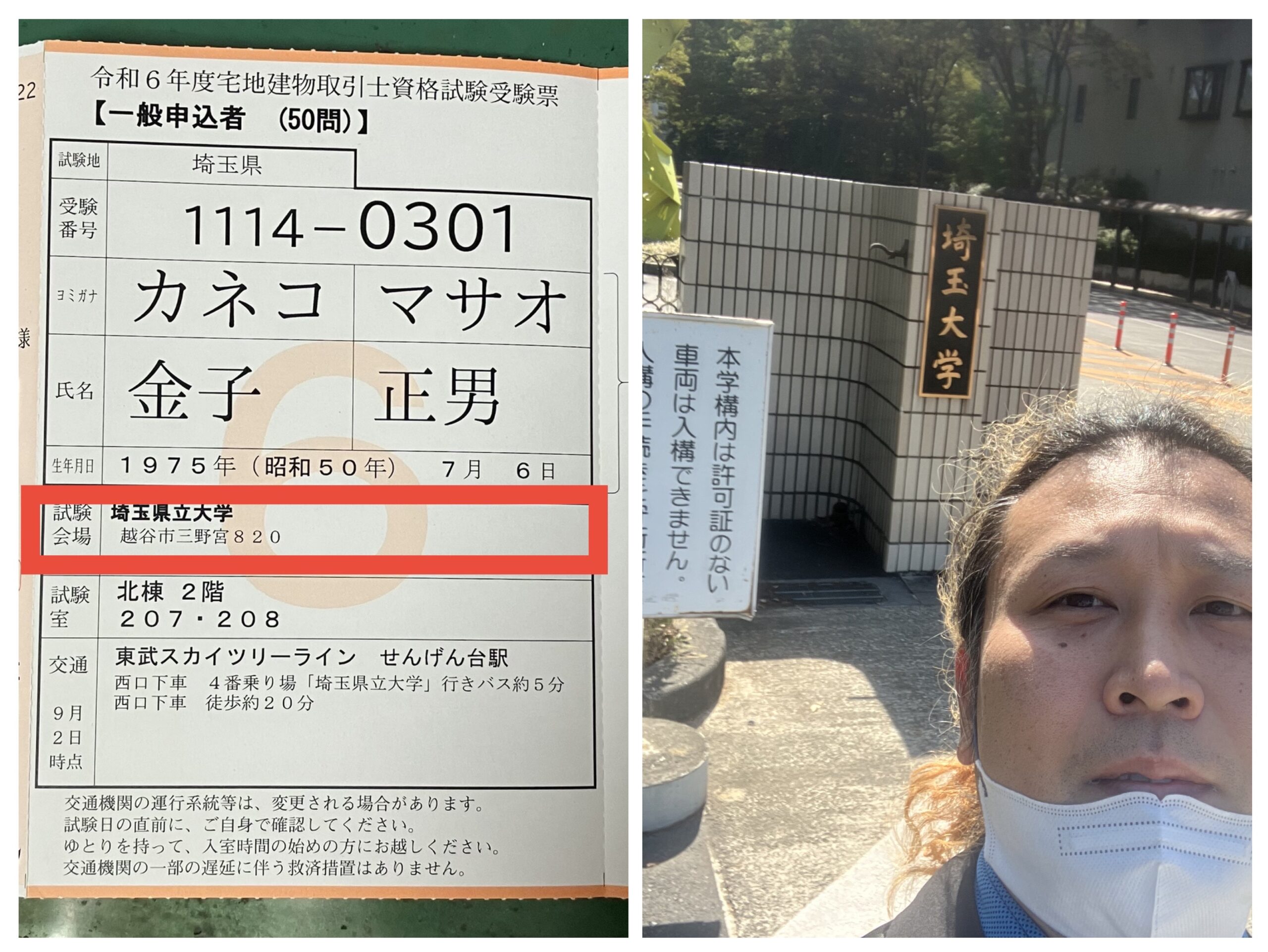 金子:天邪鬼な性格なんでしょうね。きっと。水野健先生のおかげで宅建という学問が好きになって、みるみる点数が跳ね上がっていきました。本試験の10月までには常に模試で合格点を越えていった矢先に思わぬミスが。2024年度「宅建試験」のことでした。毎年、埼玉県の主要会場は「埼玉大学」で2022年、2023年と受験しまして。その記憶があったので2024年も朝早く起きて埼玉大学近くのカフェで直前復習をしていたんです。しかし、いざ会場に行くと誰もいない。慌てて受験票を見直すと、指定されていたのは「埼玉県立大学」。名前は似ていますが、全く別の場所です。すぐ水野健先生にラインすると「タクシーで急げ!」と返信。いろいろな手を使って会場近くまで向かったのですが。途中で試験会場に入場が許される時間が過ぎ去り。頭が真っ白に。帰り道、水野先生から優しいメッセージが送られてきたから再受験しようと思いましたが。その日どうやって帰ったか覚えていないほど頭が真っ白に。後日、2024年度の試験問題を時間測ってやってみたところ合格点ピッタシでして。むしろ踏ん切りがつきました。神様のお告げだ。来年はブッチギリな点数で合格しろ!と。