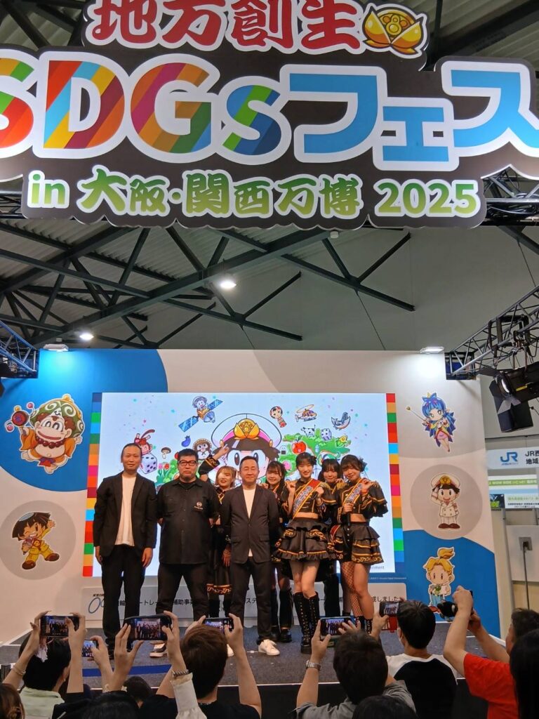 金子:JR西日本様から地方創生を絡めてステージをしたいと。大阪だけでなく全国の自治体とKONAMIさんの「桃太郎電鉄」を絡めて5月・6月にステージを組みたいので協力してもらえないかと来ました。最初は「おもしろ!」って軽返事で受けたのですが、あとあと大変な任務と分かり、当日までに全国各地への調整、世界規模ならではの万博ルールに挟まれ、体重10キロぐらい瘦せたのではないのかなあ、と。もちろん終わったあとは「日本各地の宣伝ができたり、海外の人が多く集まり会場内に入りきらない人気企画で満足感はありましたが」。終いには最終日、地方創生と日本の未来について出演者としてトークショーに登壇させてもらいました。一生に一度あるか分からない世界的祭典に参加できて墓場まで持っていける土産話でしたね。