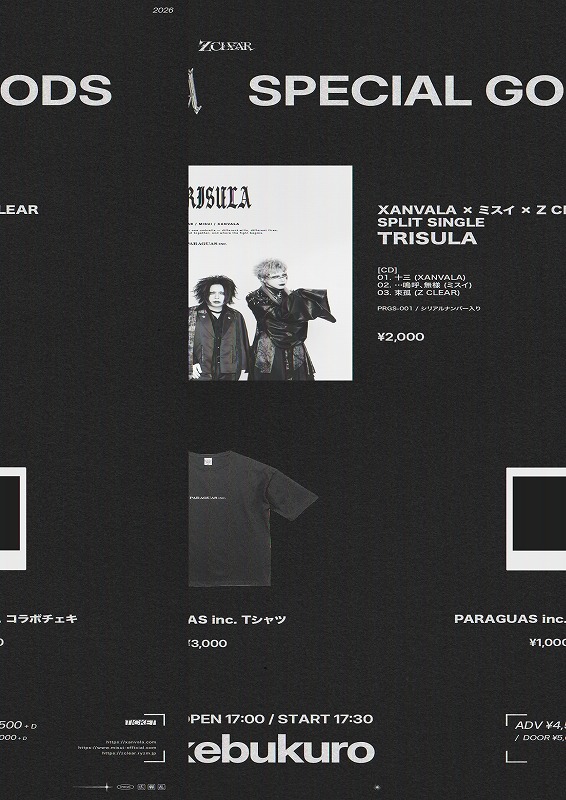 ◆XANVALA×ミスイ×Z CLEAR、SPLIT SINGLE「TRISULA」 ◆PARAGUAS inc. Tシャツ ◆PARAGUAS inc. コラボチェキ