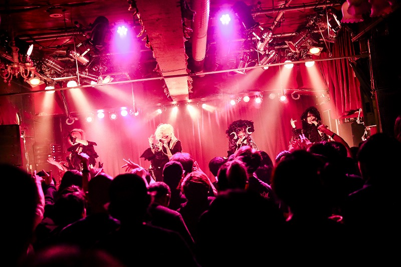 激しさと美しさが交錯する広大でシンフォニックな世界を創り出す『DUALIS』や、勇壮でシンフォニックな音色が、観客たちを異世界へと導いた『EDEN』では、魔境のオペラ歌手となって歌う彼女たちに向けて、フロア中から無数の拳が突き上がっていた。CHIHO FUKUDAの深みのある歌声が、触れた人の魂を震わせる。一人ひとりのセリフが、興奮へと導く誘いの言葉になる。胸を揺さぶる美メロウな歌声とゴシックでシンフォニックな曲が折り重なり、この場に甘美な世界を描きだす。これは堕天使たちの戯れ?今は、この楽園の中、4人の黒い堕天使たちと一緒に宴に興じていたい。そのうえで、美しくも煌めいた音が流れだす。そこへ4人が「刻を超えてゆけよ」と凛々しい声で歌いだした、『Fortuna』だ。4人が想いを一つに「刻めこの思いを」と歌い上げるその声に魂を奮い立てた観客たちが、左へ右へと駆けながら、彼女たちの姿を道標に暴れ狂っていた。